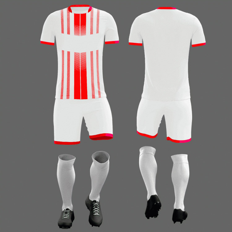 - Яркая футбольная форма для команды имеет смелый запоминающийся дизайн, насыщенные густые цвета.